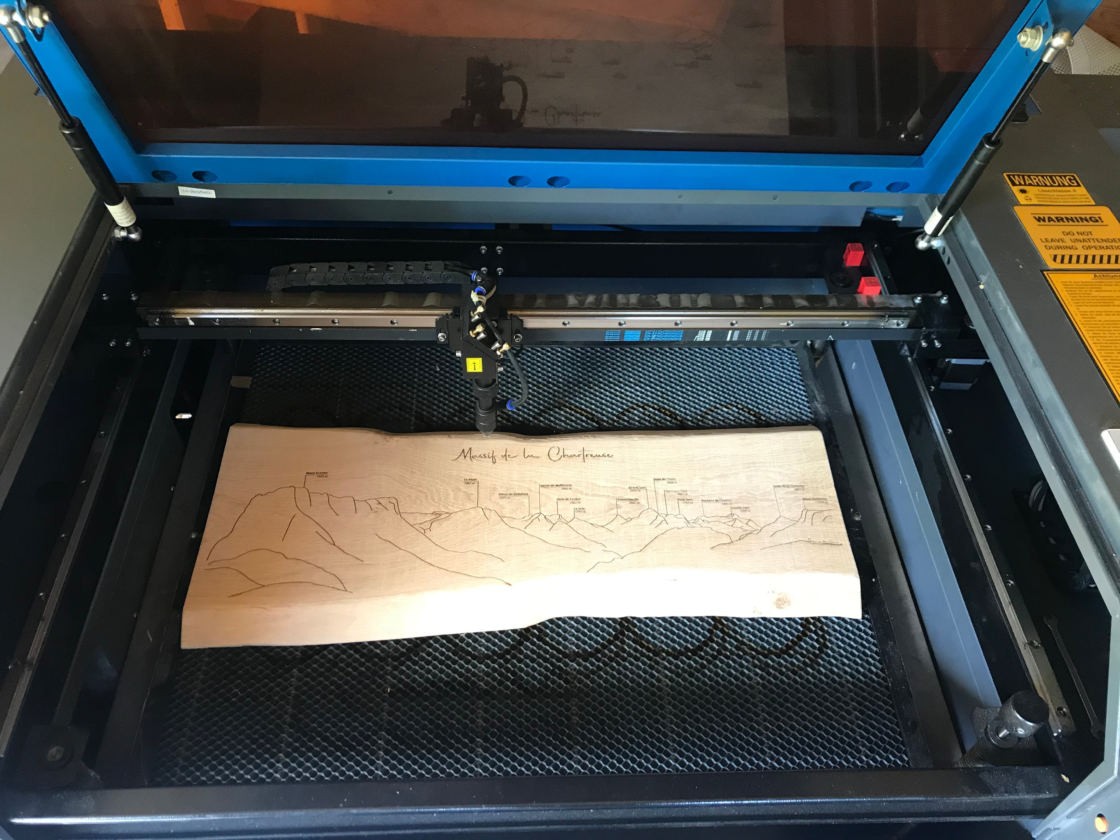 Lorsque nous avons fondé l'entreprise, c'était notre premier critère: pas d'ardoise chinoise ou de bois polonais, on ratisse au plus près de notre atelier! Pour les planches, le bois provient des forêts qui nous entourent. Les sous-verres sont découpés dans des planches fines provenant d'Ardèche. Les ardoises viennent de Morzine et les magnifiques cadres sont fabriqués artisanalement par notre (presque) voisin.