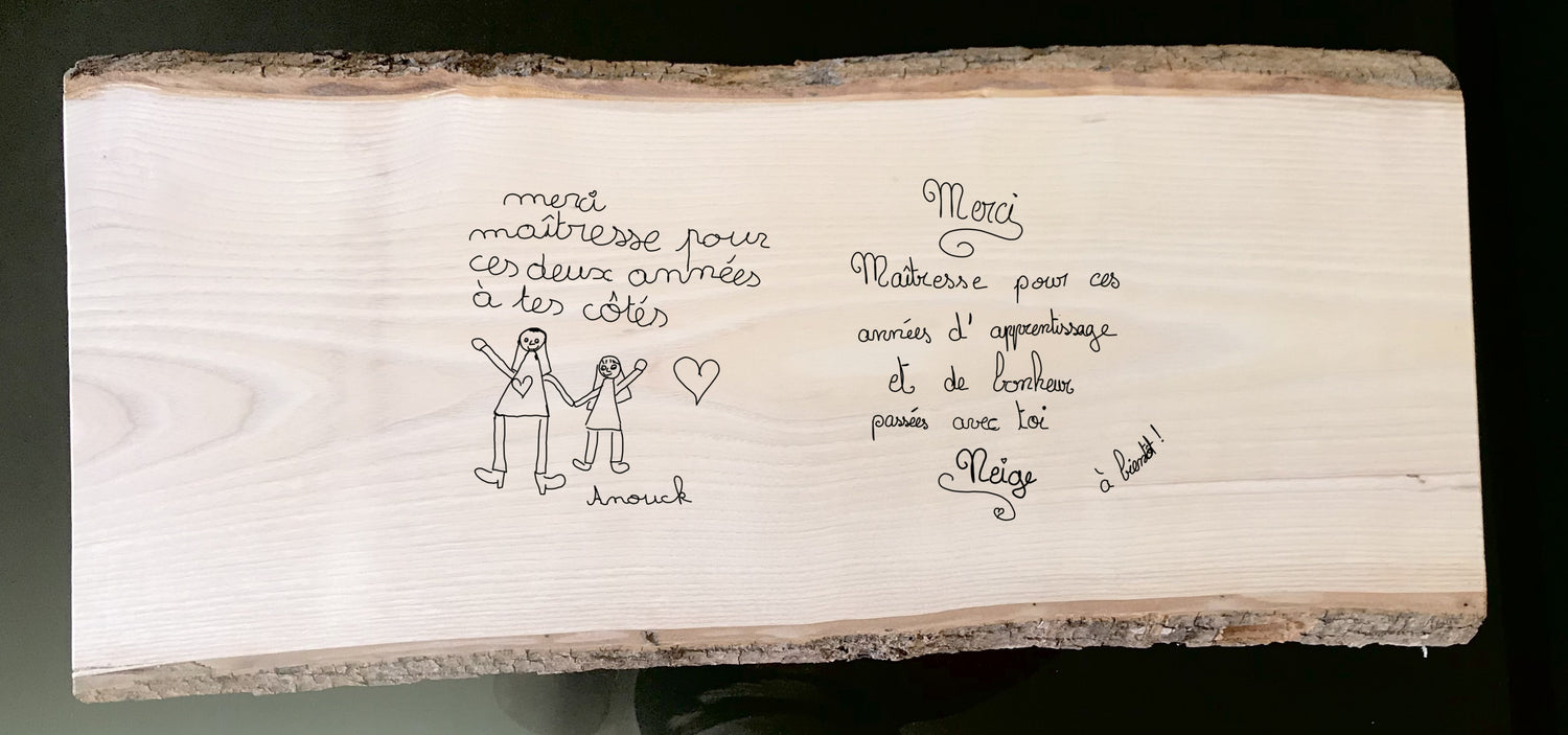Nos préparons manuellement les planches (découpe, rabotage, ponçage) et nous effectuons la gravure laser dans notre atelier qui se situe à Crêts-en-Belledonne, petite commune montagnarde en Isère.