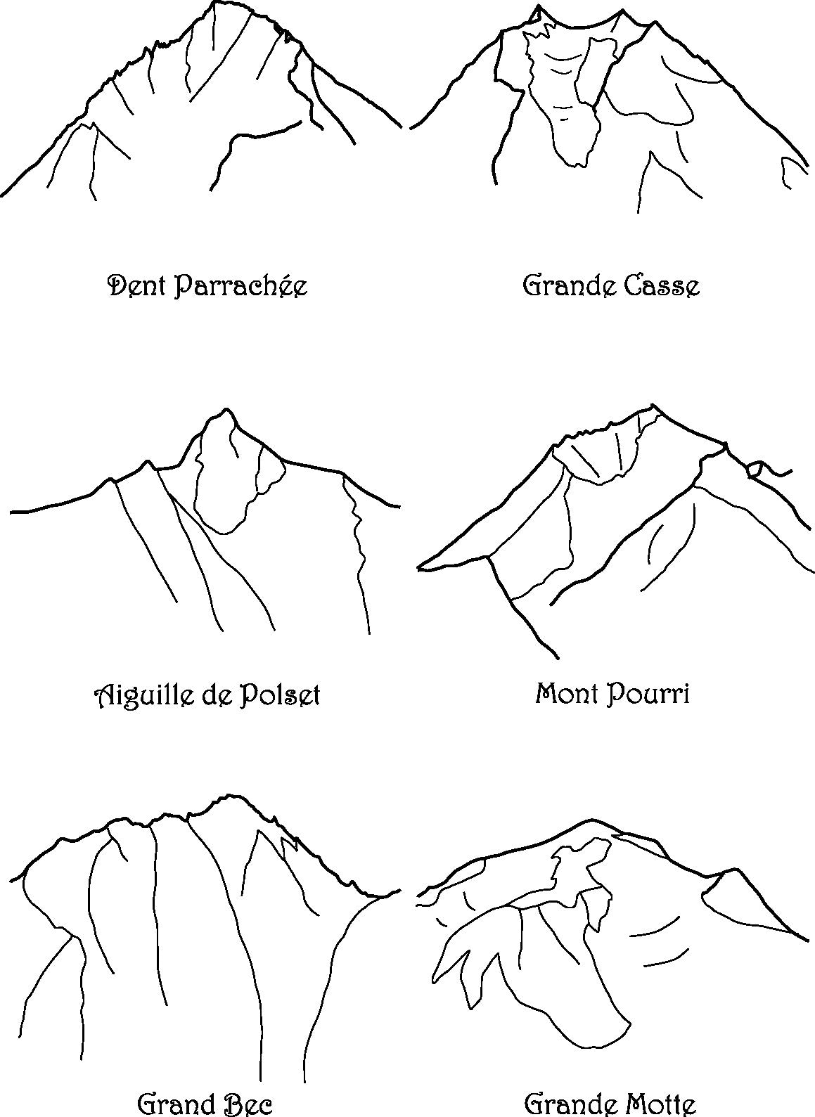 Pour chaque massif, d'autres sommets sont possibles, n'hésitez pas à demander ! Par exemple, dans le massif des Ecrins, l'Olan et les Agneaux, dans le massif du Mont-Blanc, les Miages, Bionnassay, dans le massif des Aravis, les Quatre Têtes, etc.