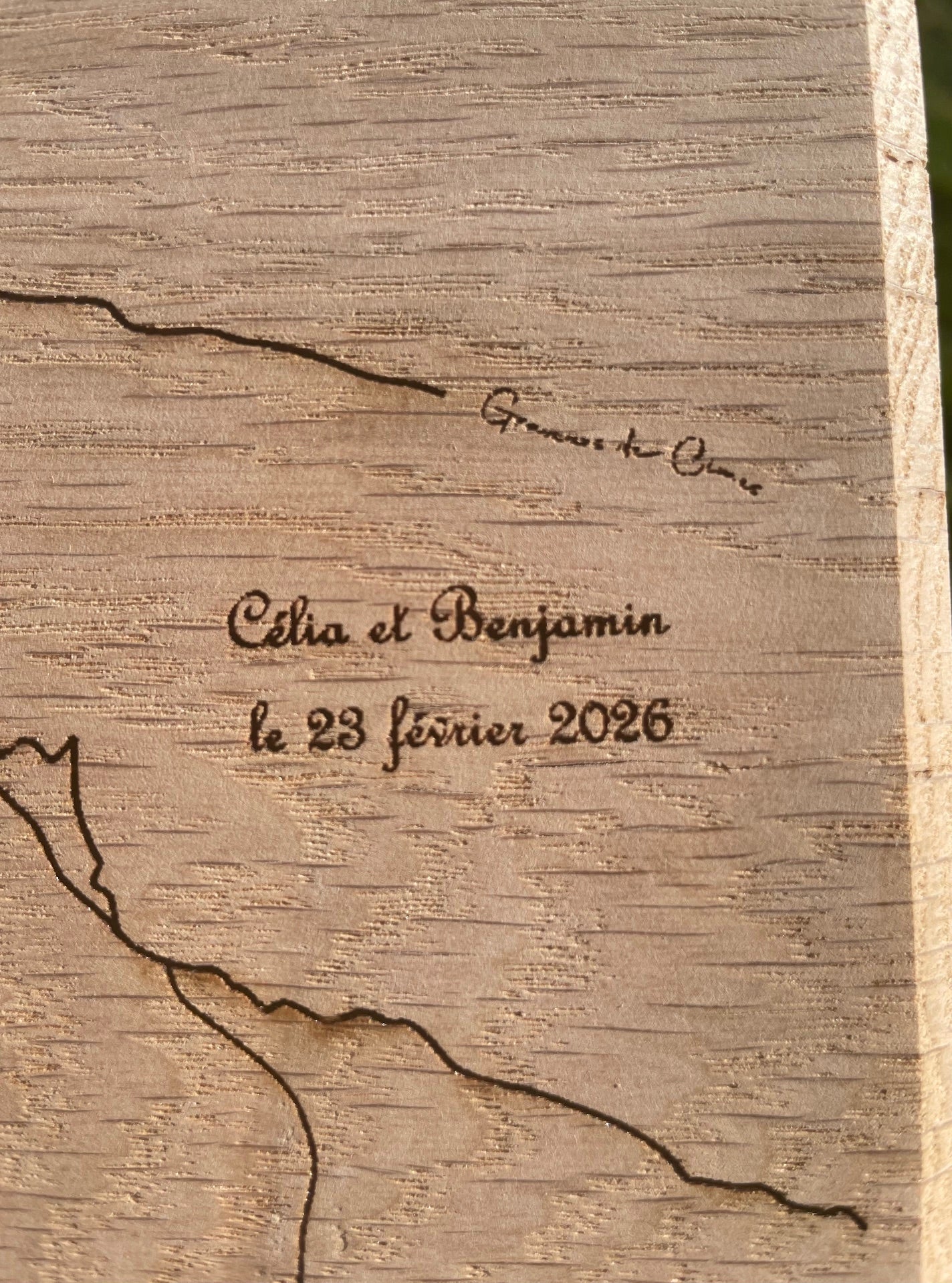 Chaque planche est unique et ses dimensions peuvent varier. Elle fait environ 65 cm de long sur 30 cm de large. Elle est munie d'un système de fixation. Choisissez l'une des quatre essences de bois proposées (chêne, frêne, merisier ou érable), ainsi que la finition (bords naturels ou chanfreinés). Si vous souhaitez une version personnalisée, il est possible de dessiner votre parcours et d'ajouter du texte (Précisez votre parcours et le texte souhaité en commentaires lors de votre commande. Une version image vous sera proposée pour validation avant la gravure).